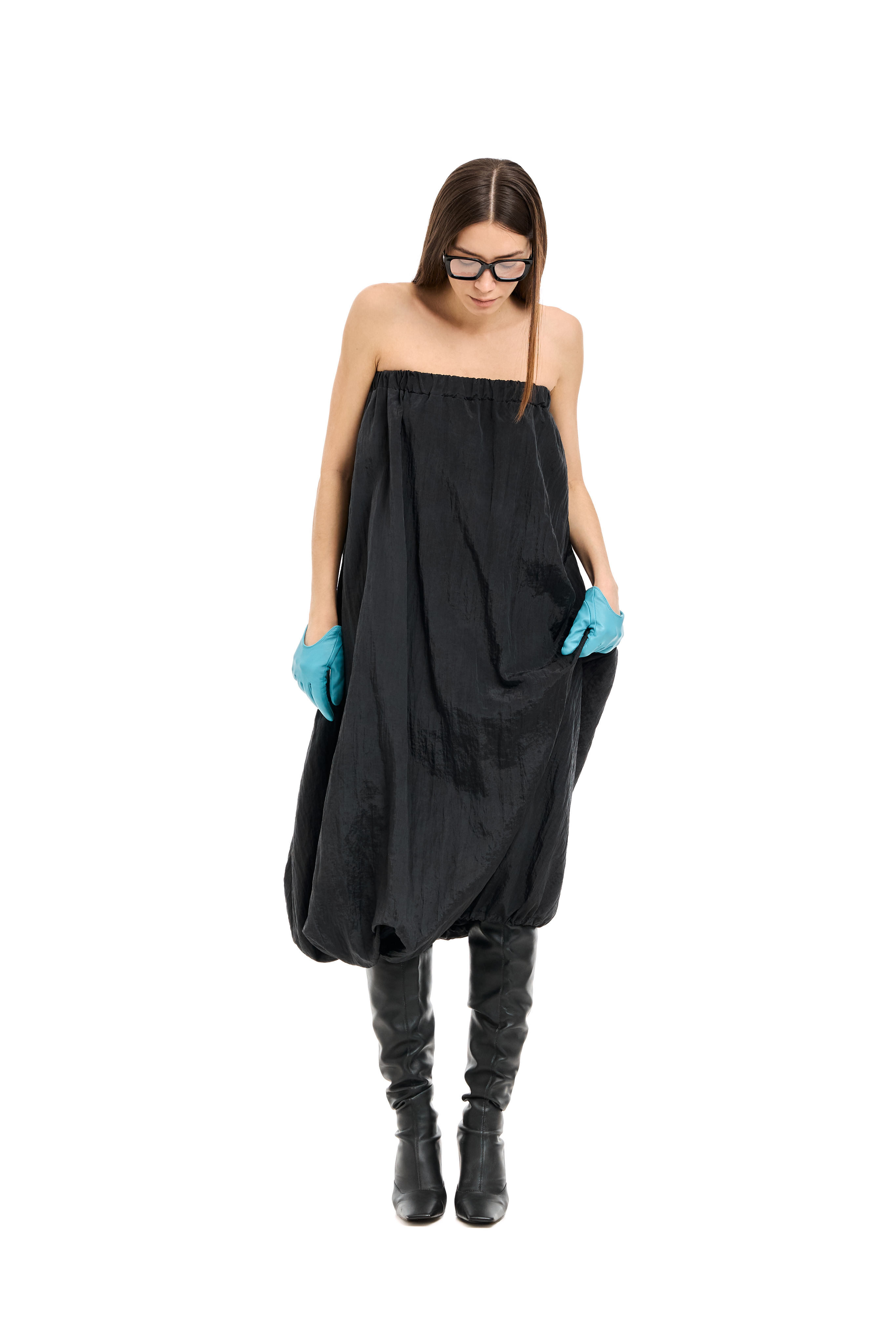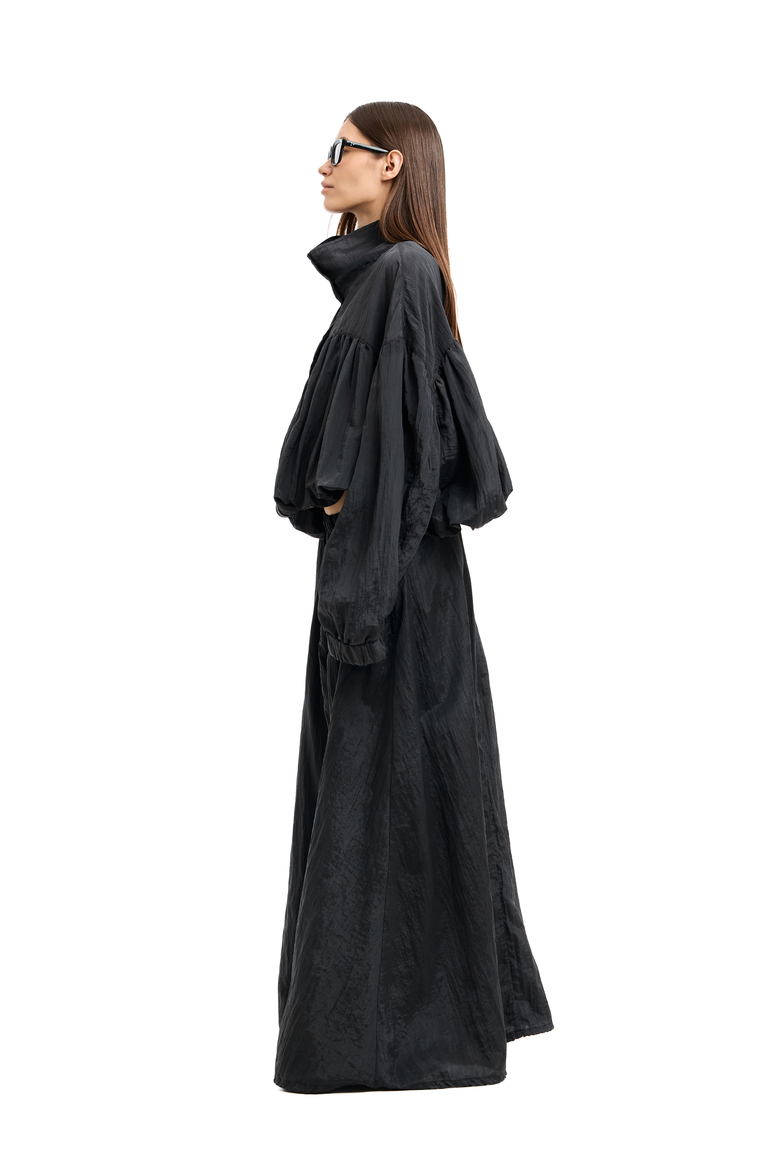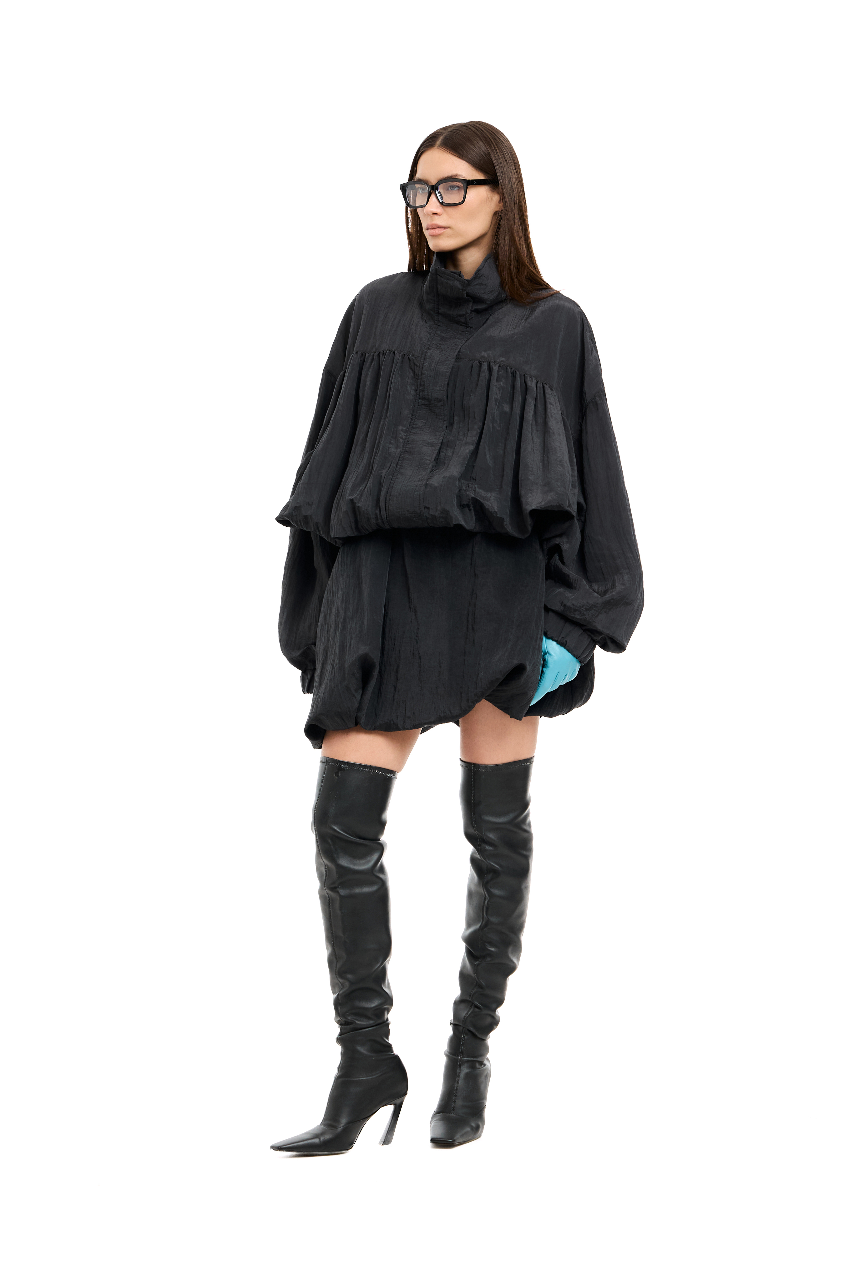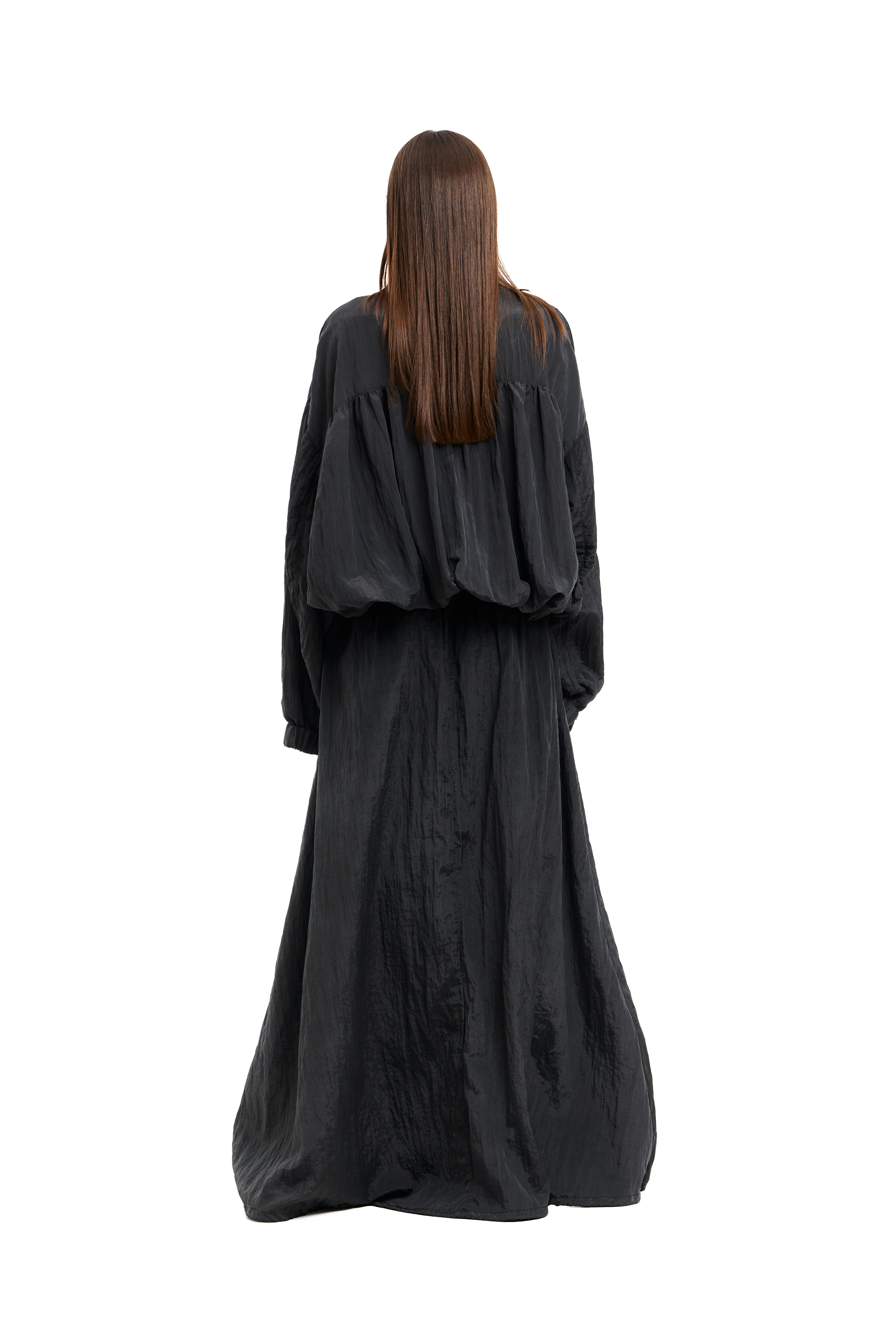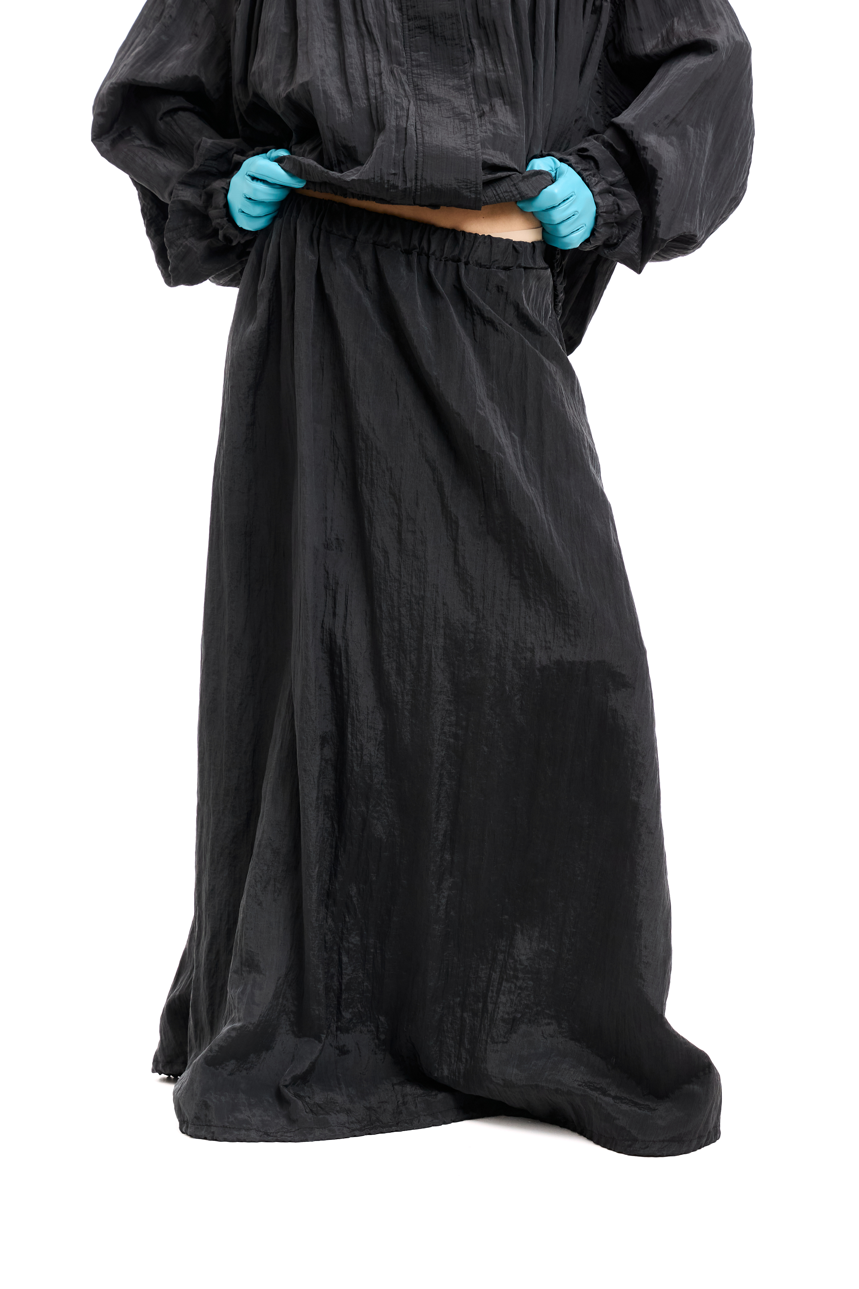 Юбка из синтетической легкой ткани с эффектом мятости. Пояс на резинке, снизу кулиса, что позволяет экспериментировать с силуэтом и длиной. Мы предлагаем носить юбку в том числе как платье-сарафан
