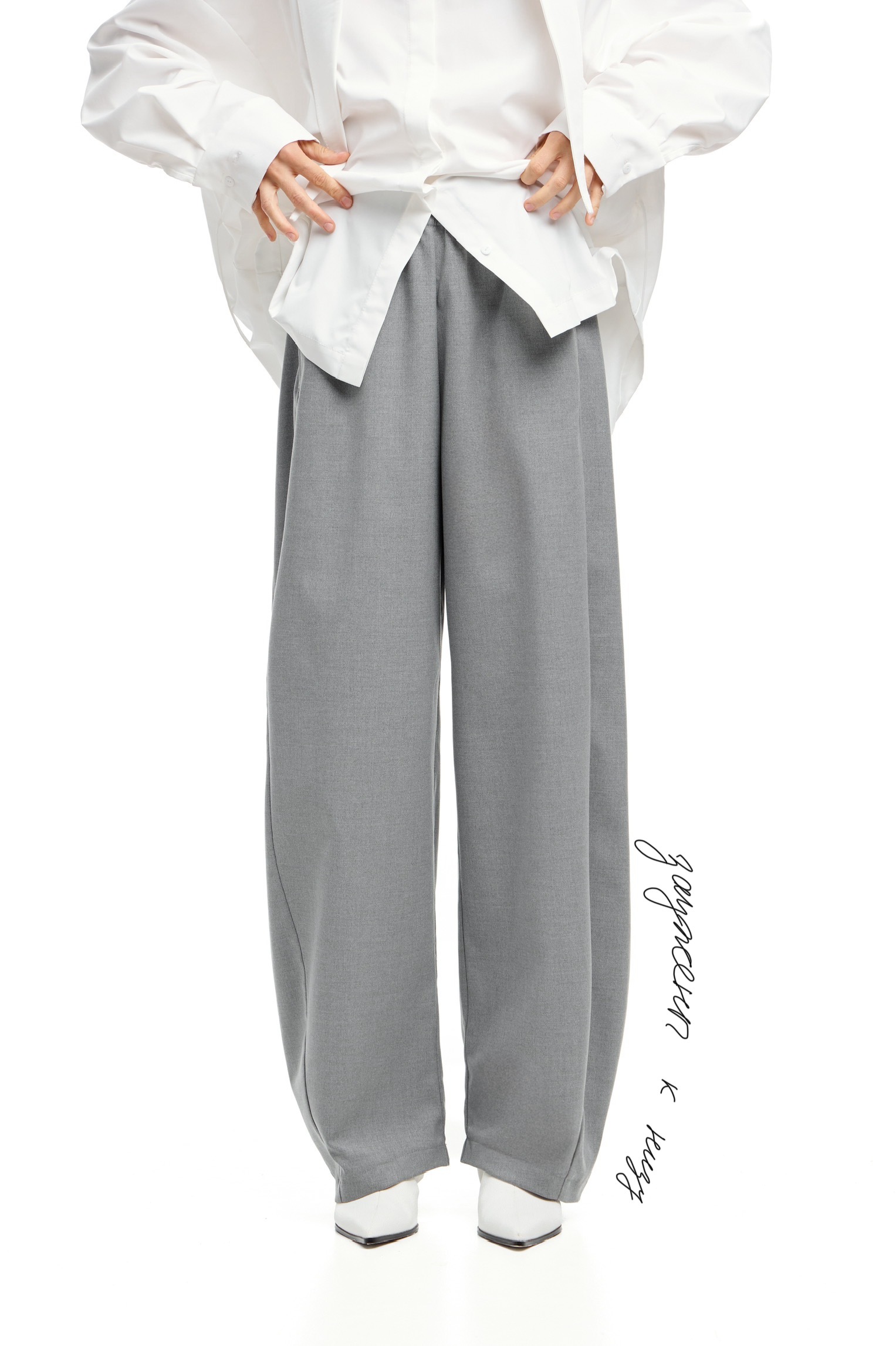 Прямые свободные брюки О-силуэта на поясе-резинке. Боковые карманы