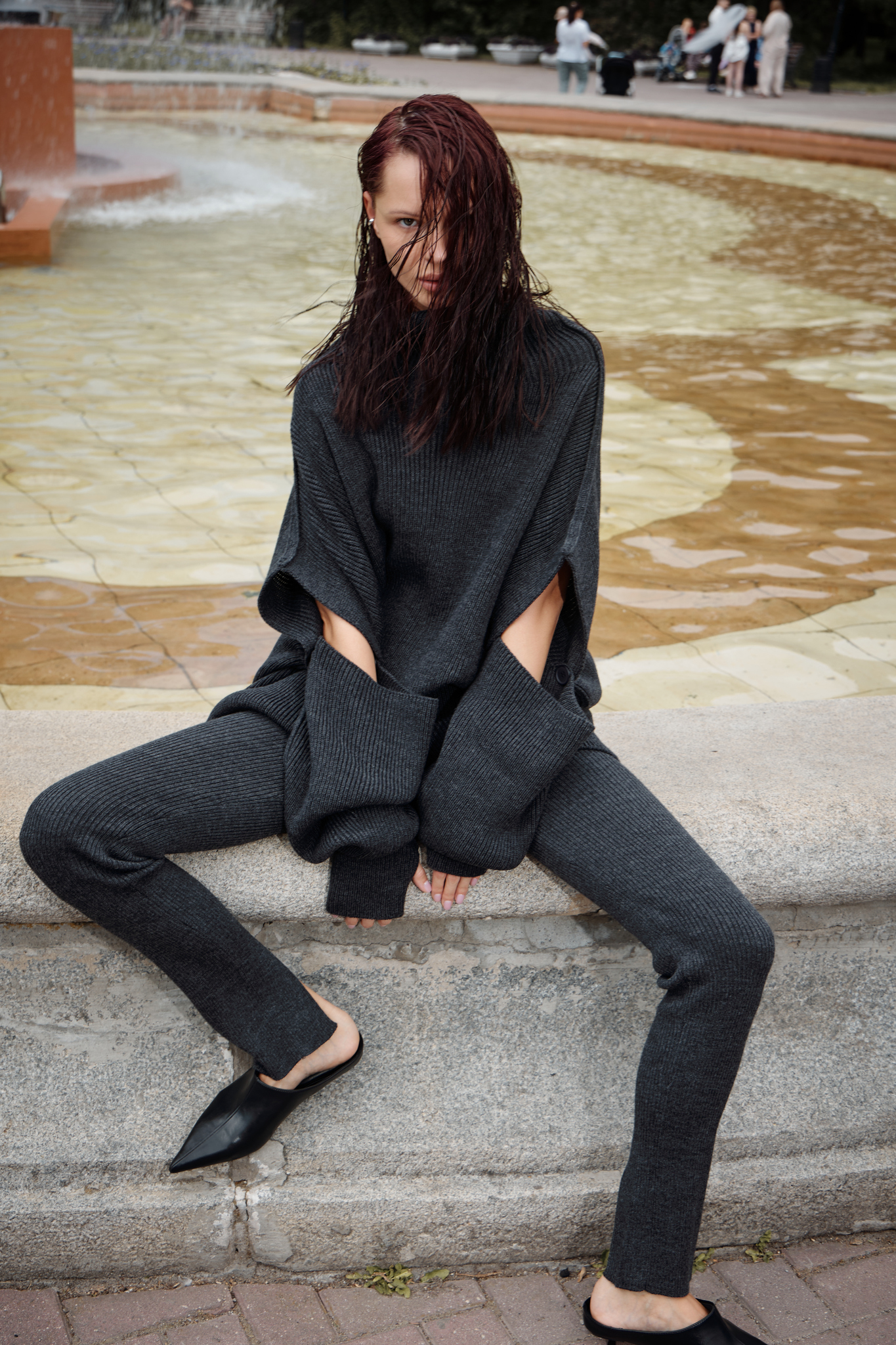 Вязанные леггинсы с разрезом