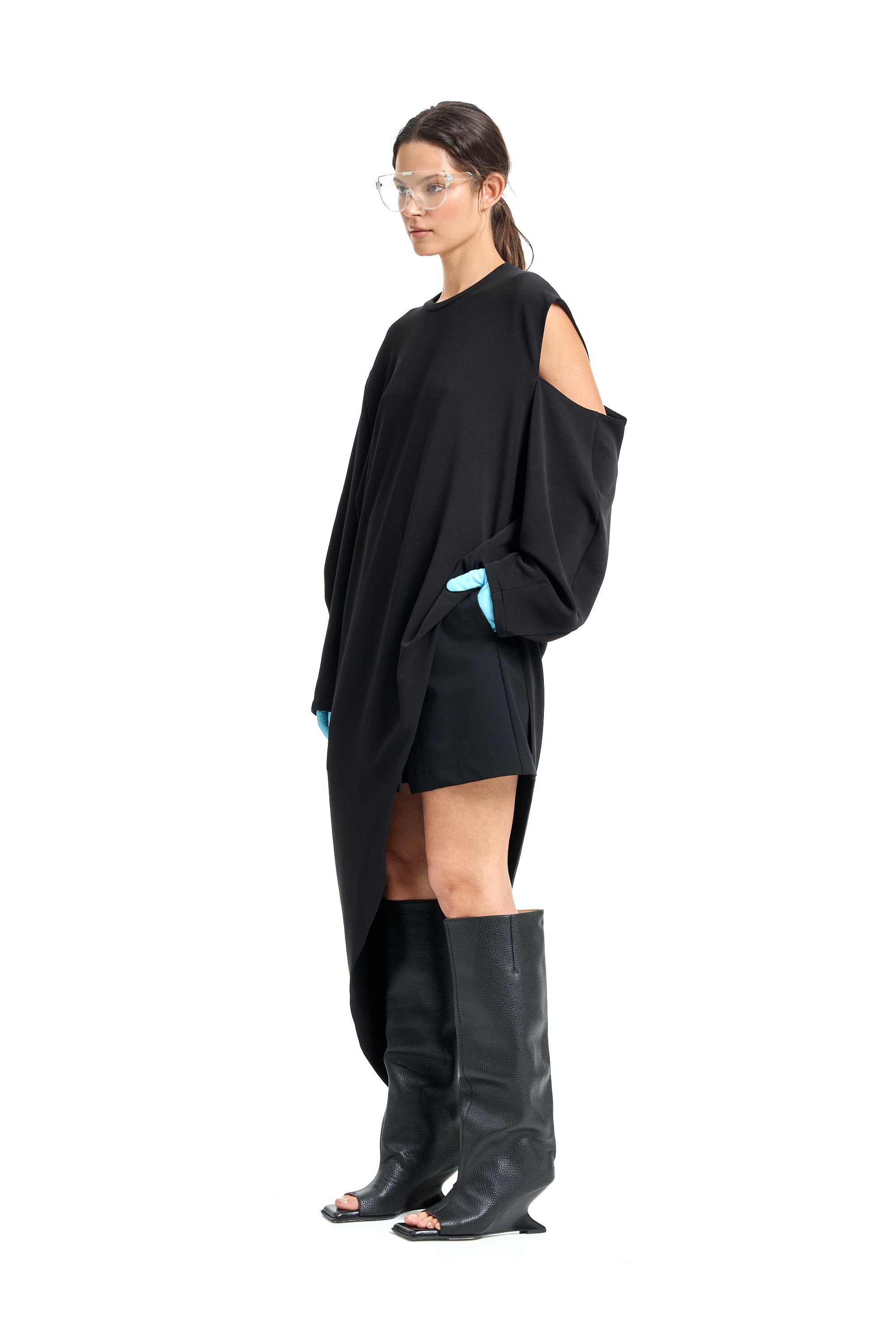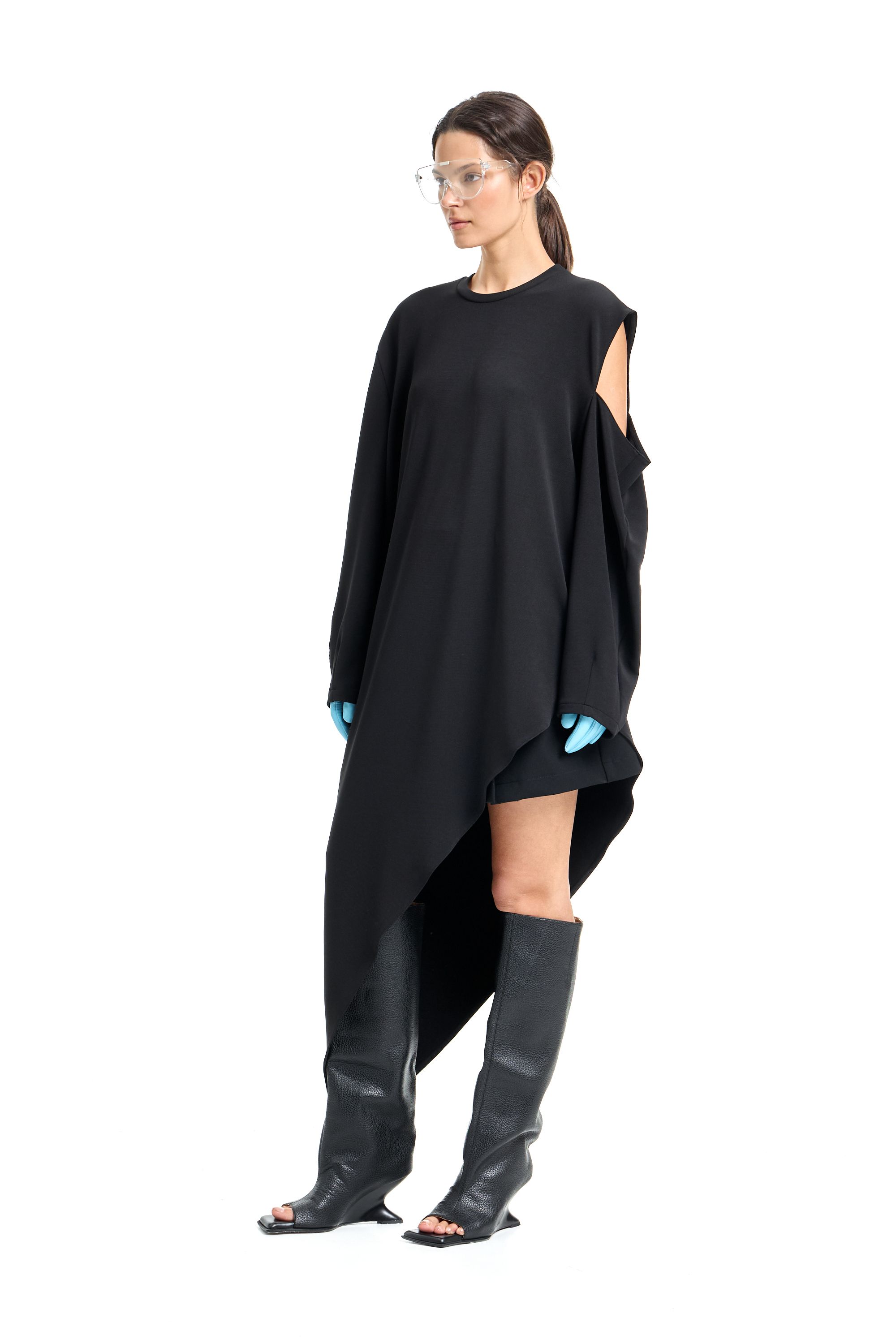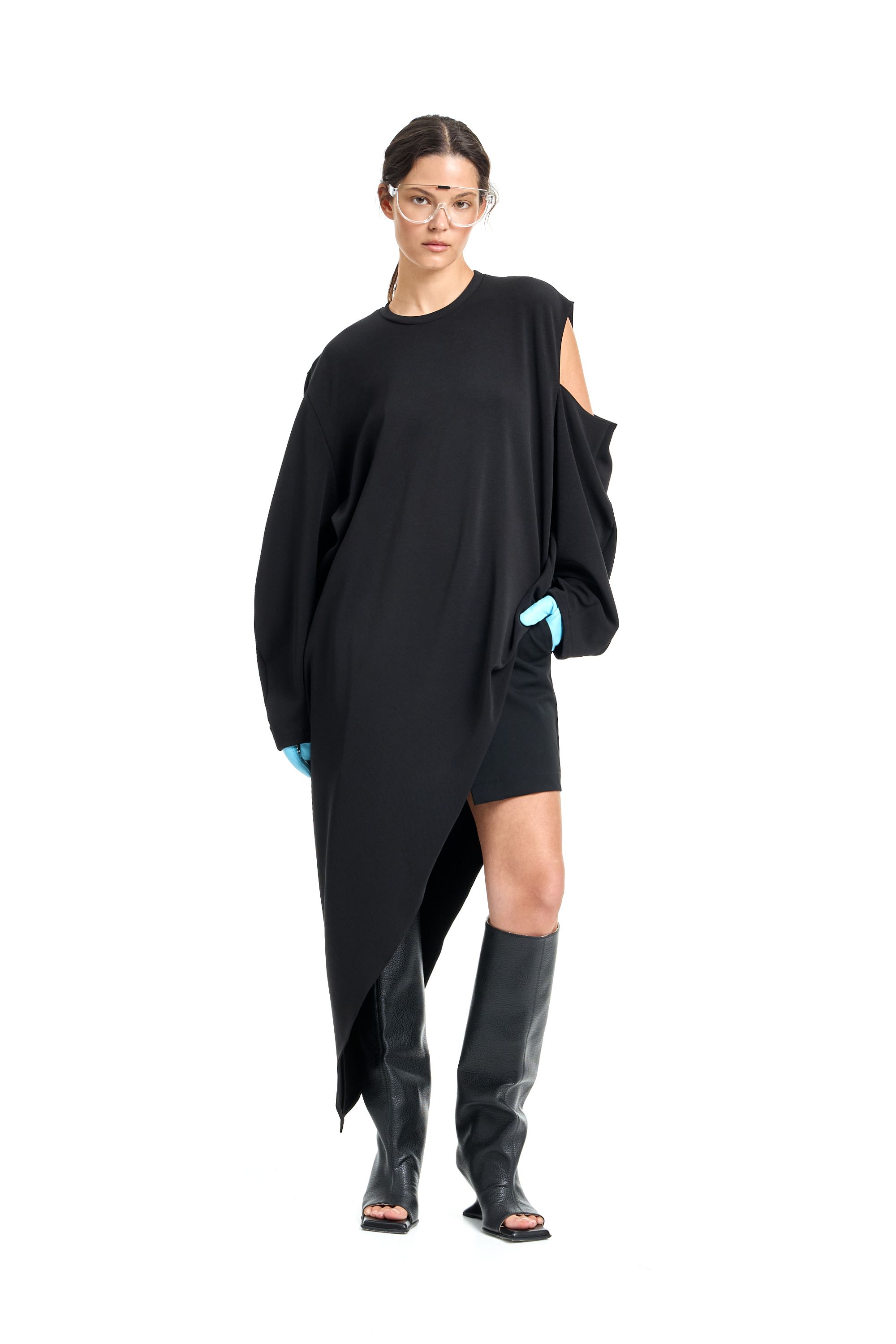 Для неординарных натур: асимметричный лонгслив, который играет с пропорциями, и имеет смелую деталь – одно плечо, открытое миру
