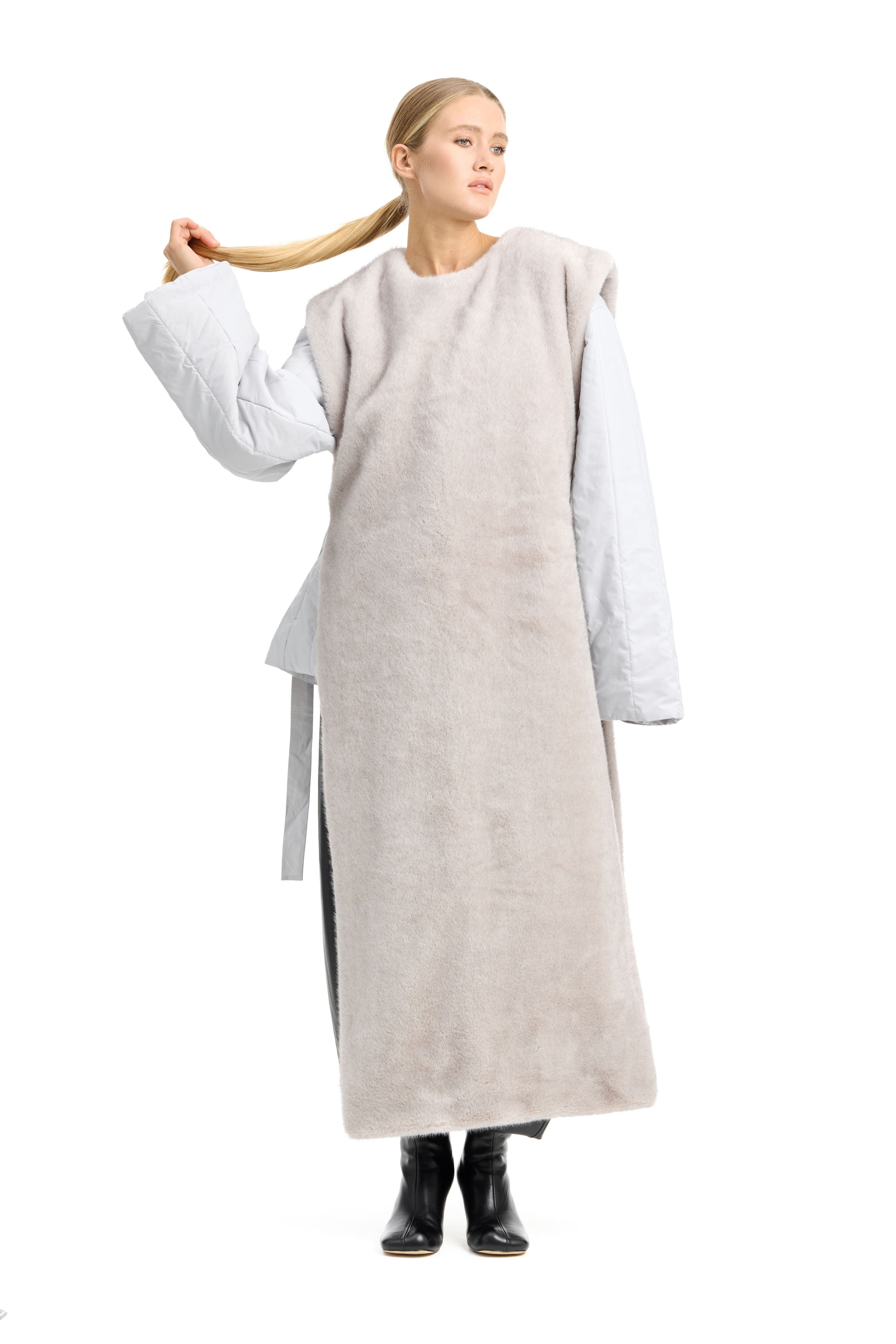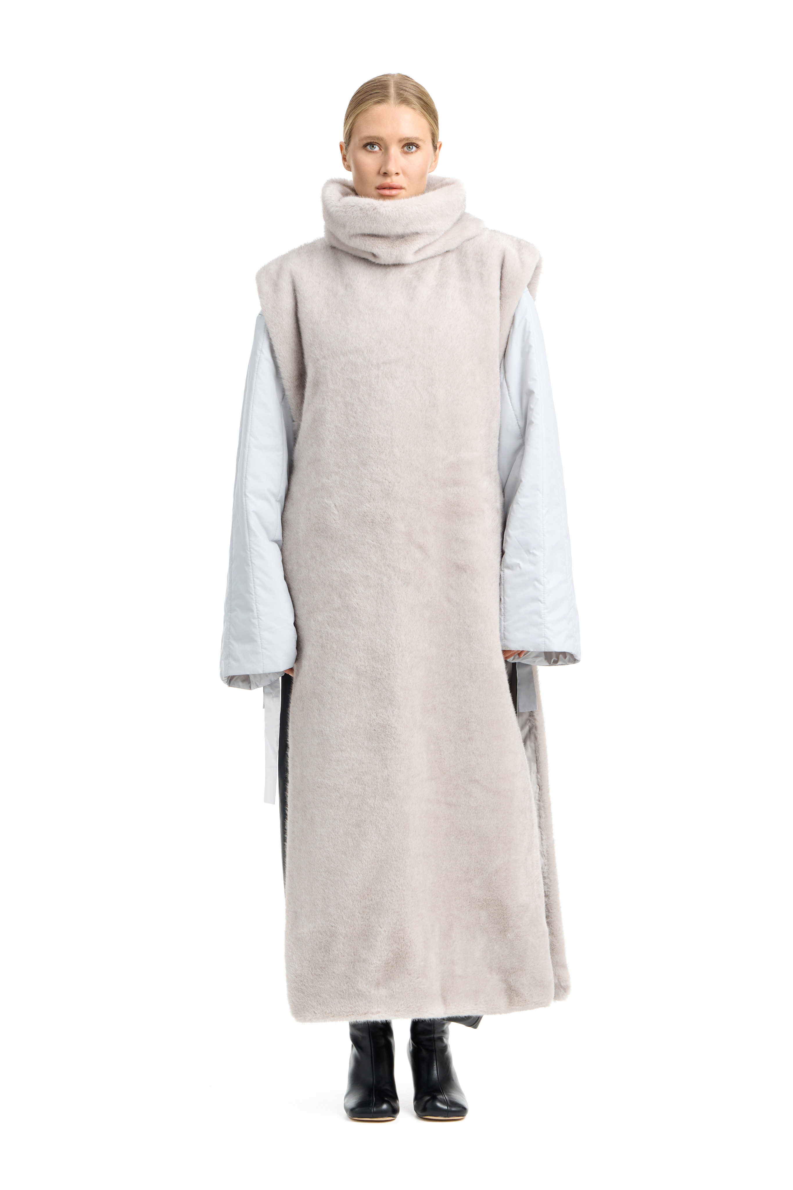 Длинная манишка из эко-меха с воротником-стойка. Можно носить как подстежку под пальто или пуховик или носить поверх. Идеально сочетается с анораком NOT USUALLY