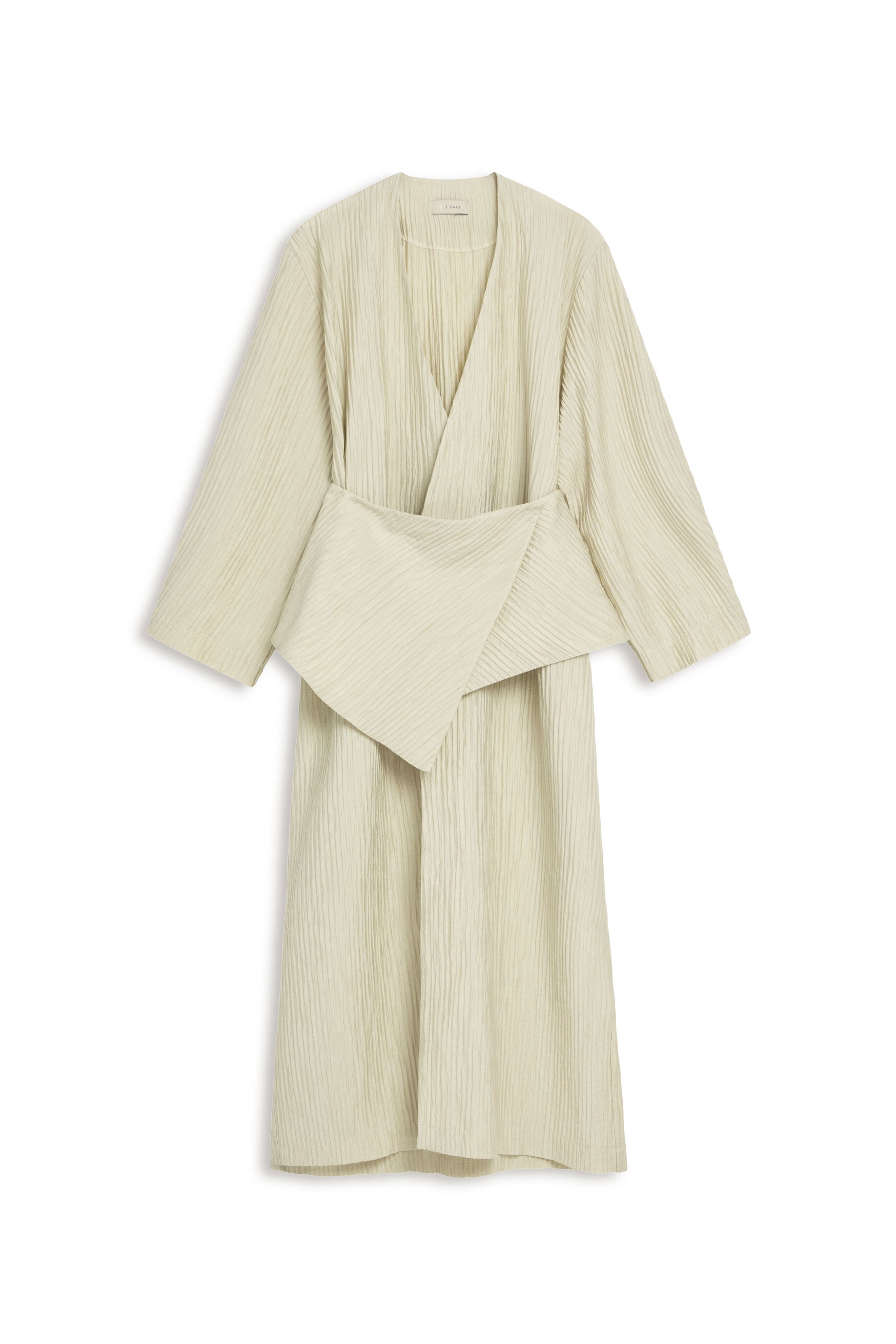 Платье-кимоно с баской из плиссированной ткани. Баска на кнопках