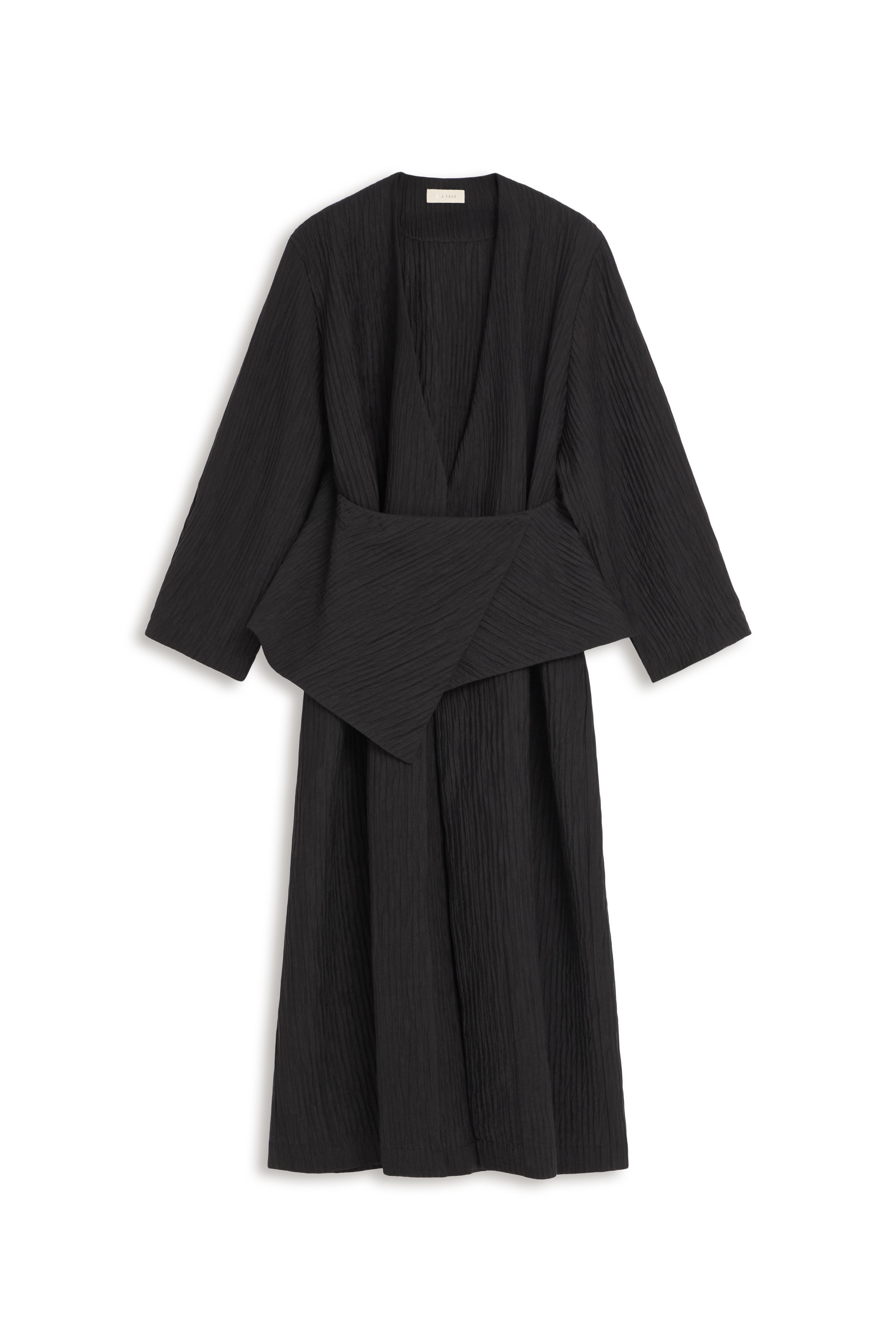 Платье-кимоно с баской из плиссированной ткани. Баска на кнопках