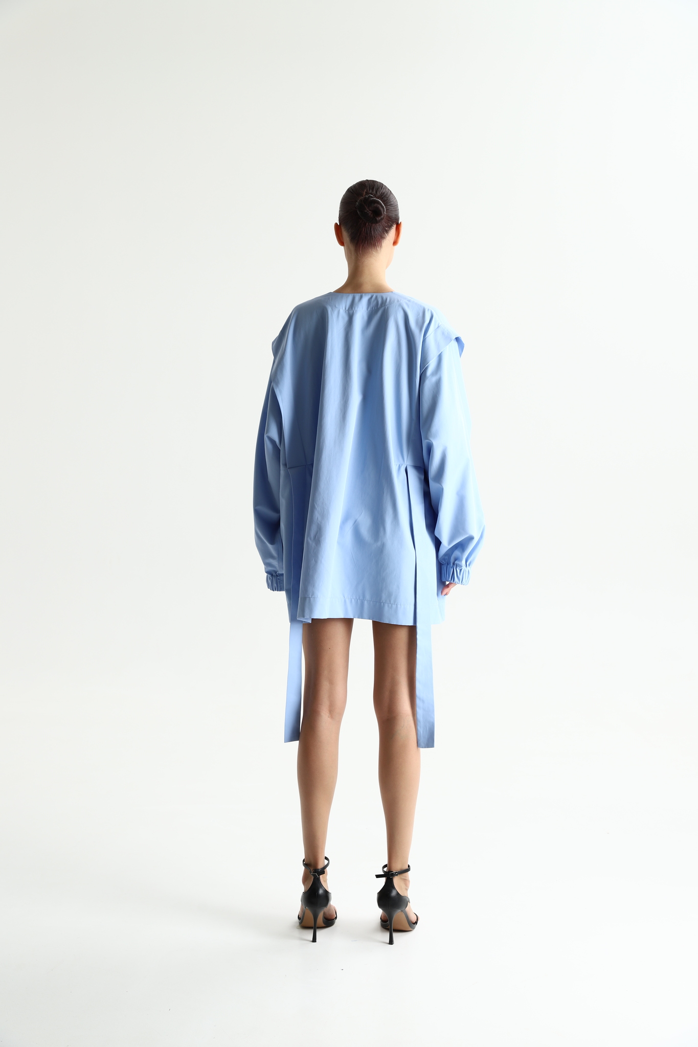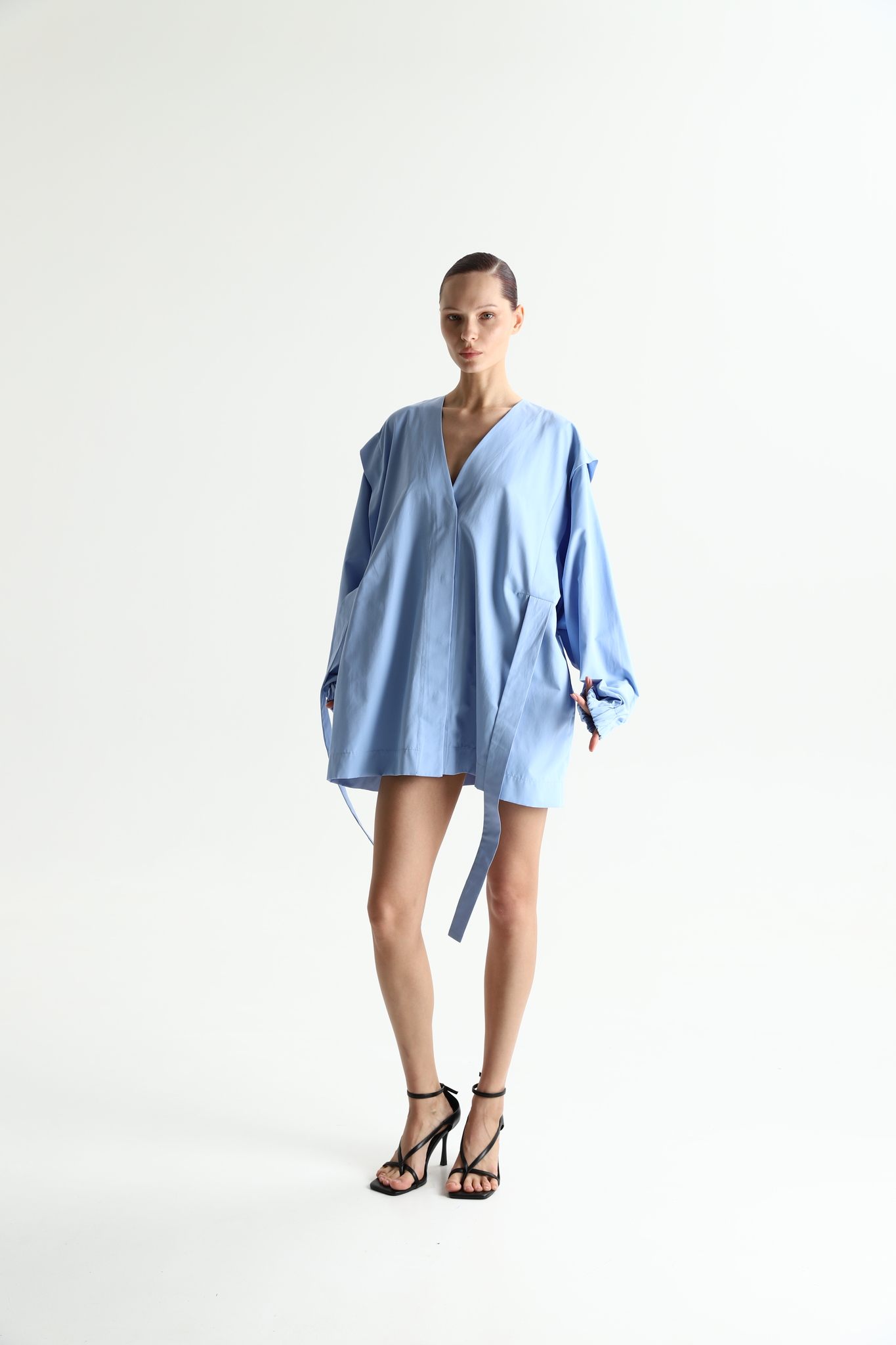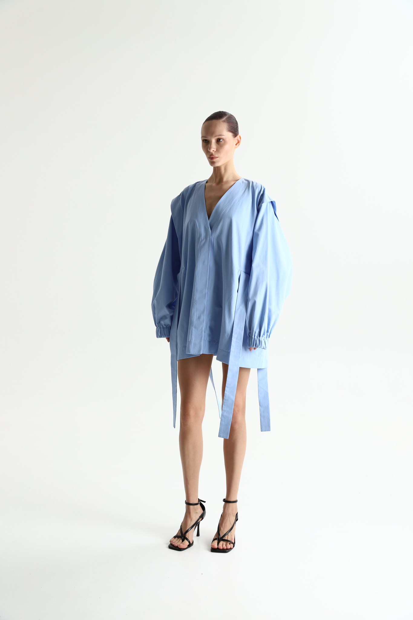 Рубашка из хлопка с V-образным вырезом и лентами. Застежка на пуговицы.