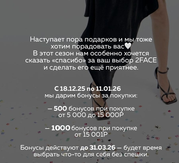 Оформите электронный подарочный сертификат 2 FACE и подарите Вашему близкому человеку возможность выбрать то, что понравится именно ему!