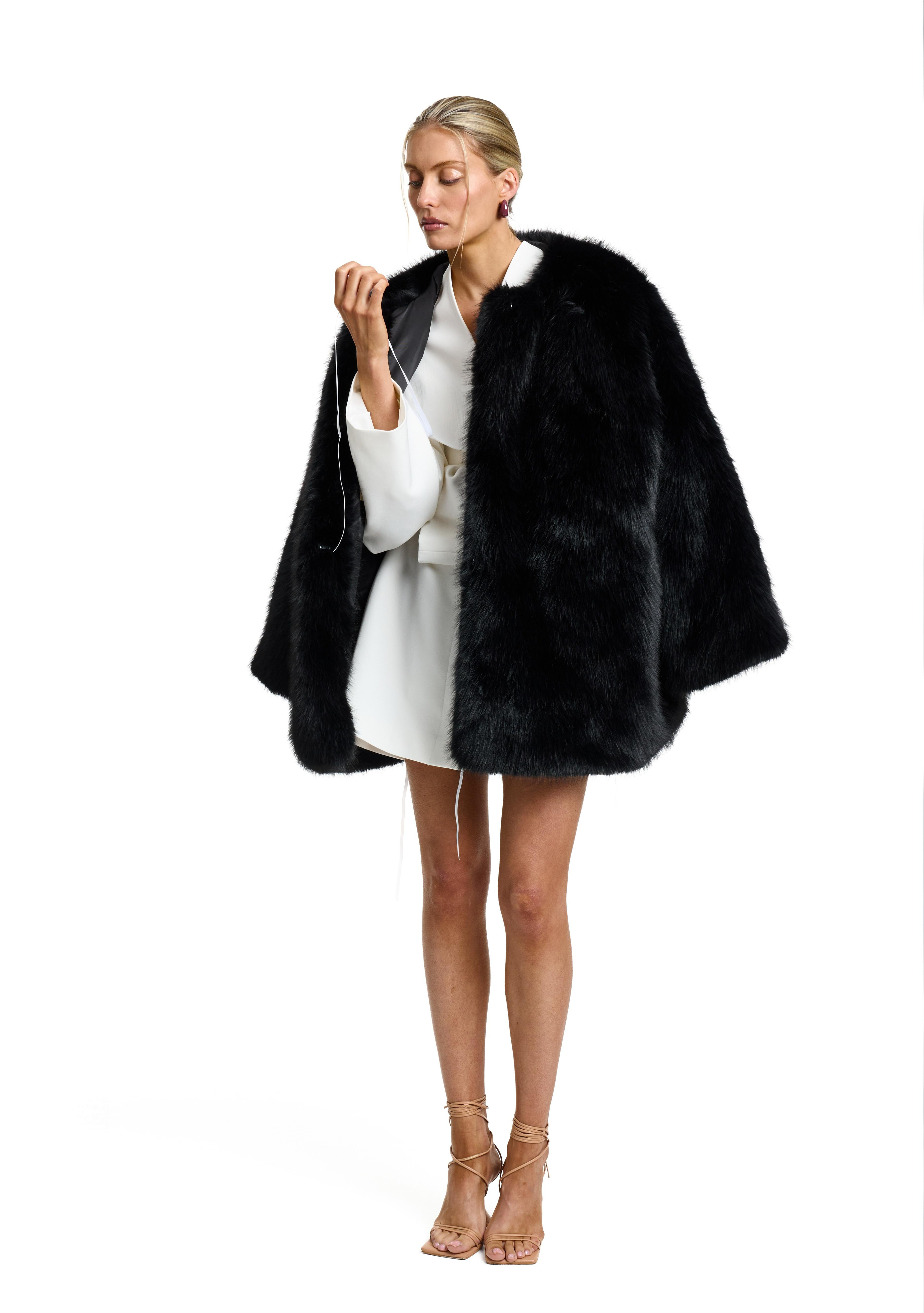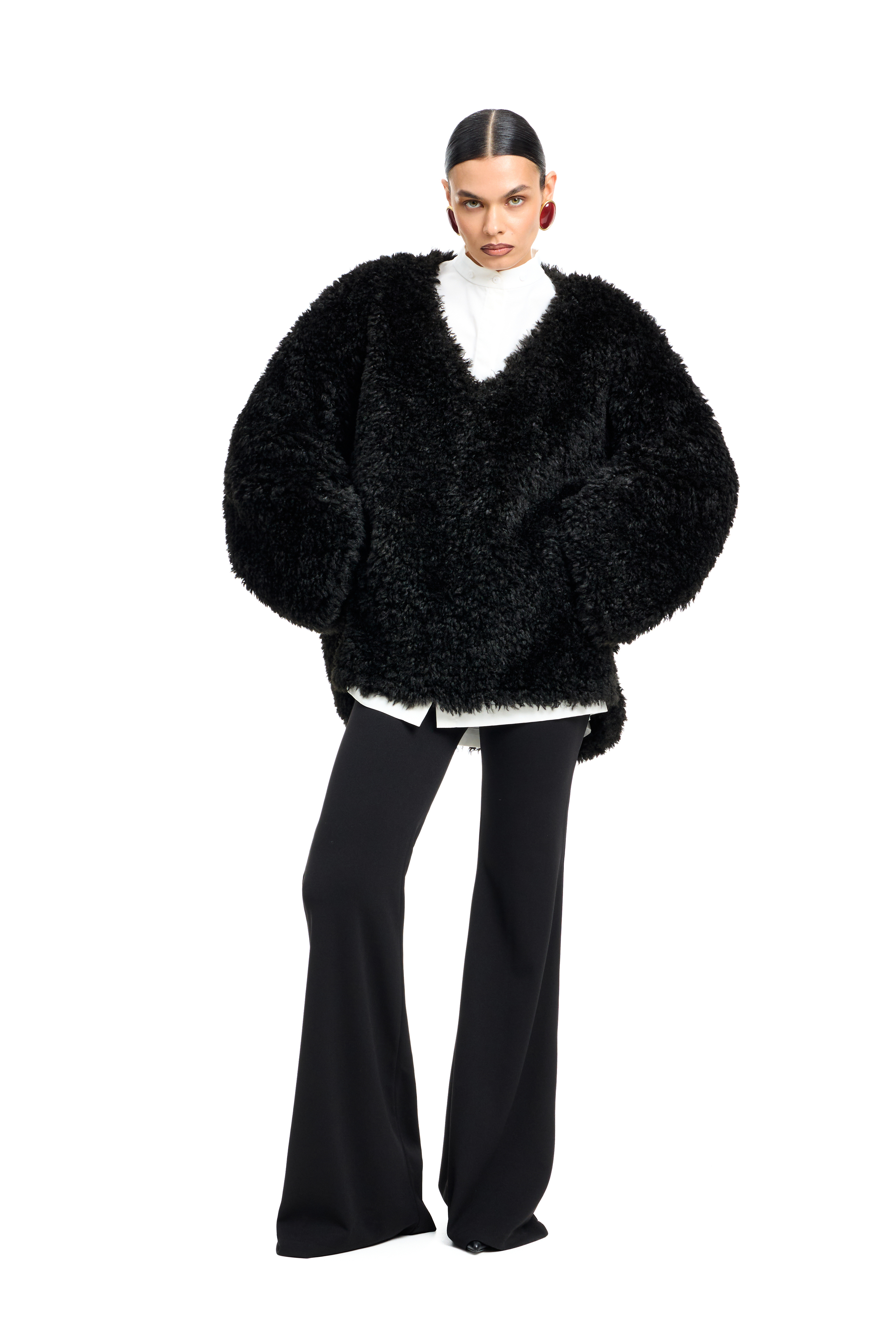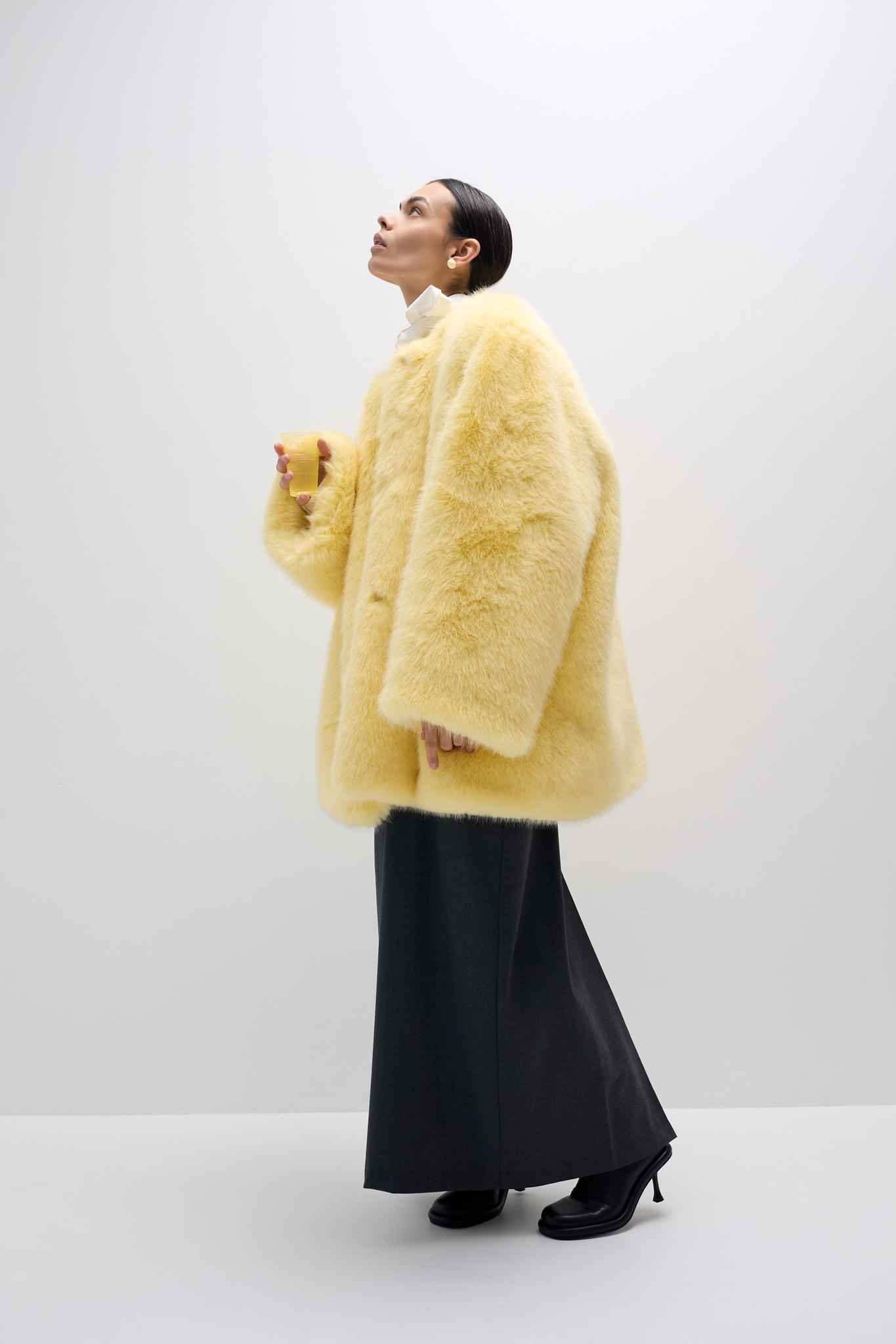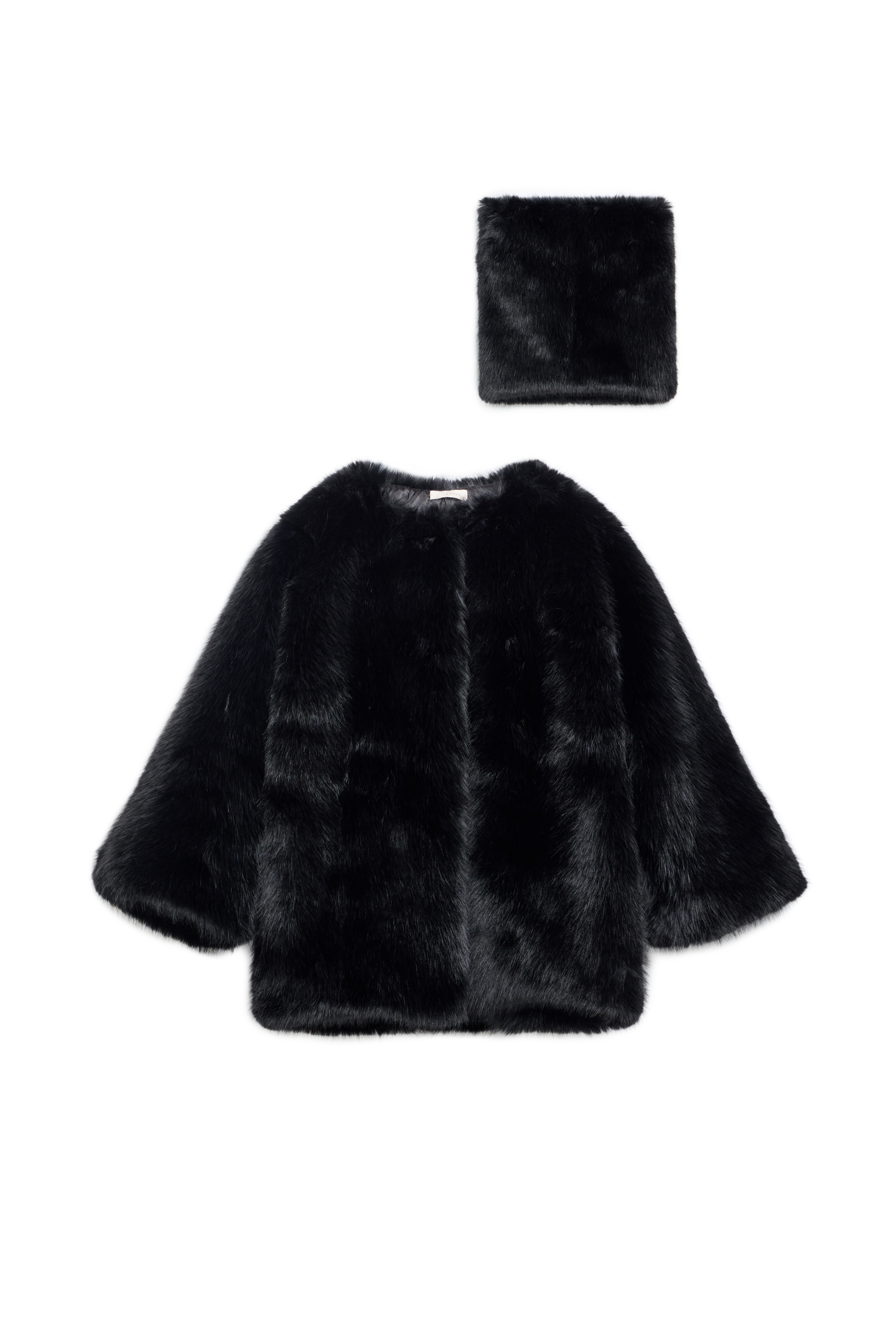 Шуба из качественного и очень приятного экомеха на подкладе с утеплением. Боковые карманы. Застежка на крючки. В комплекте ворот-муфта