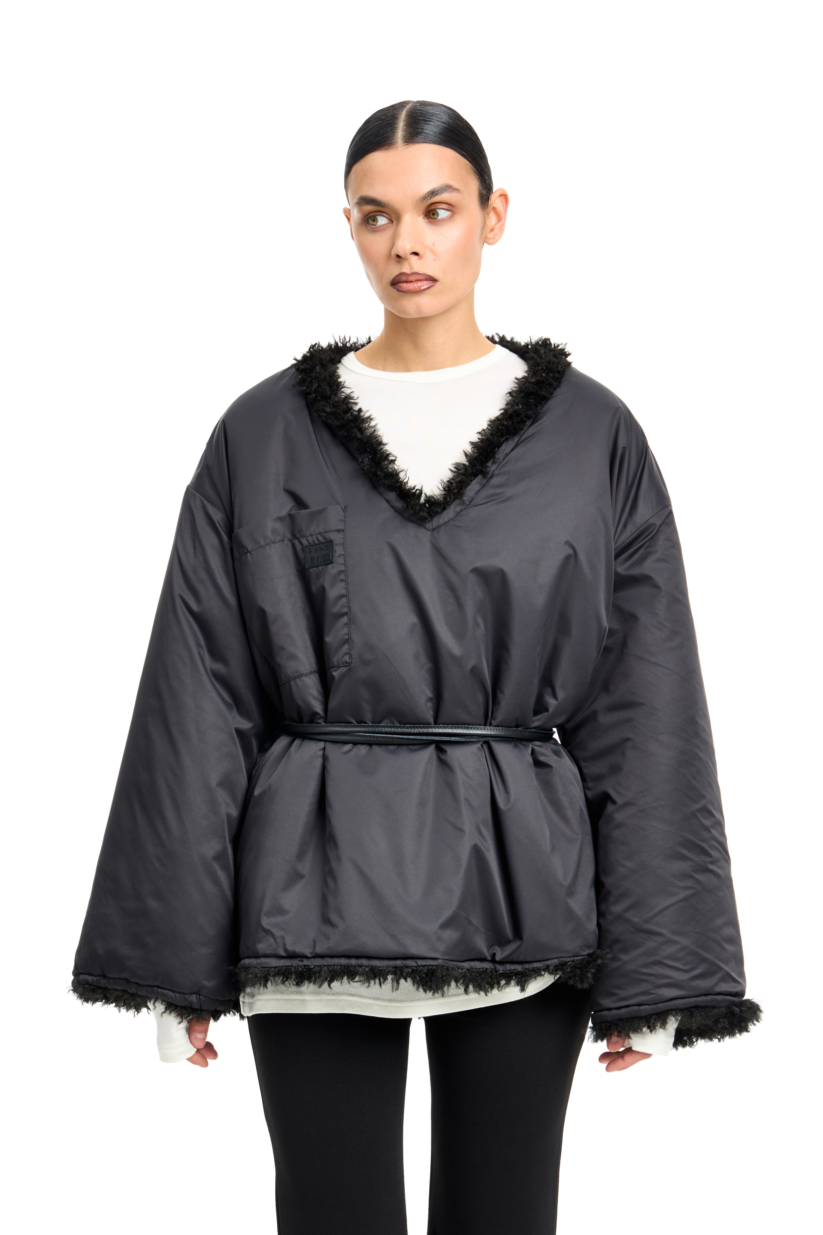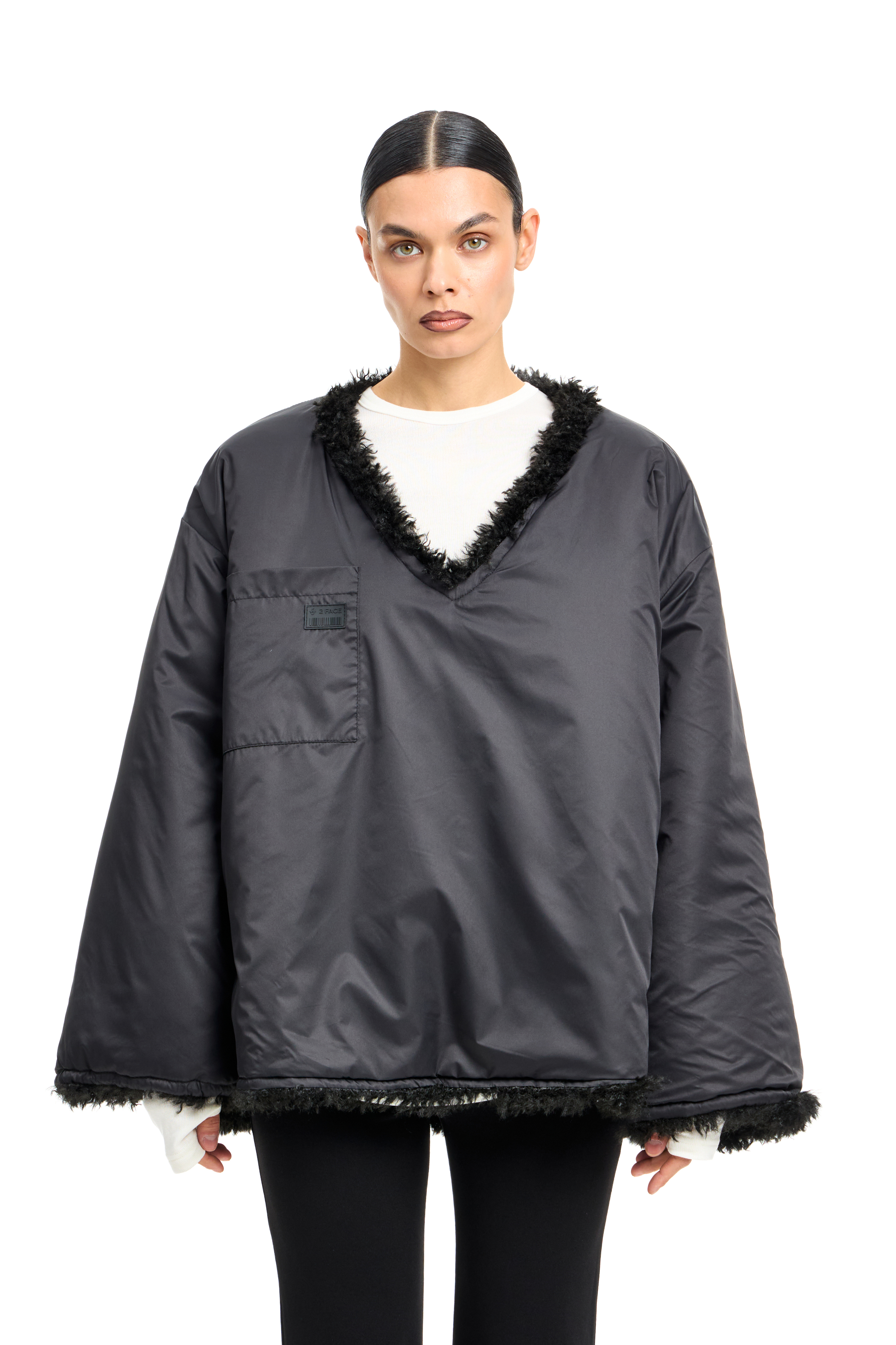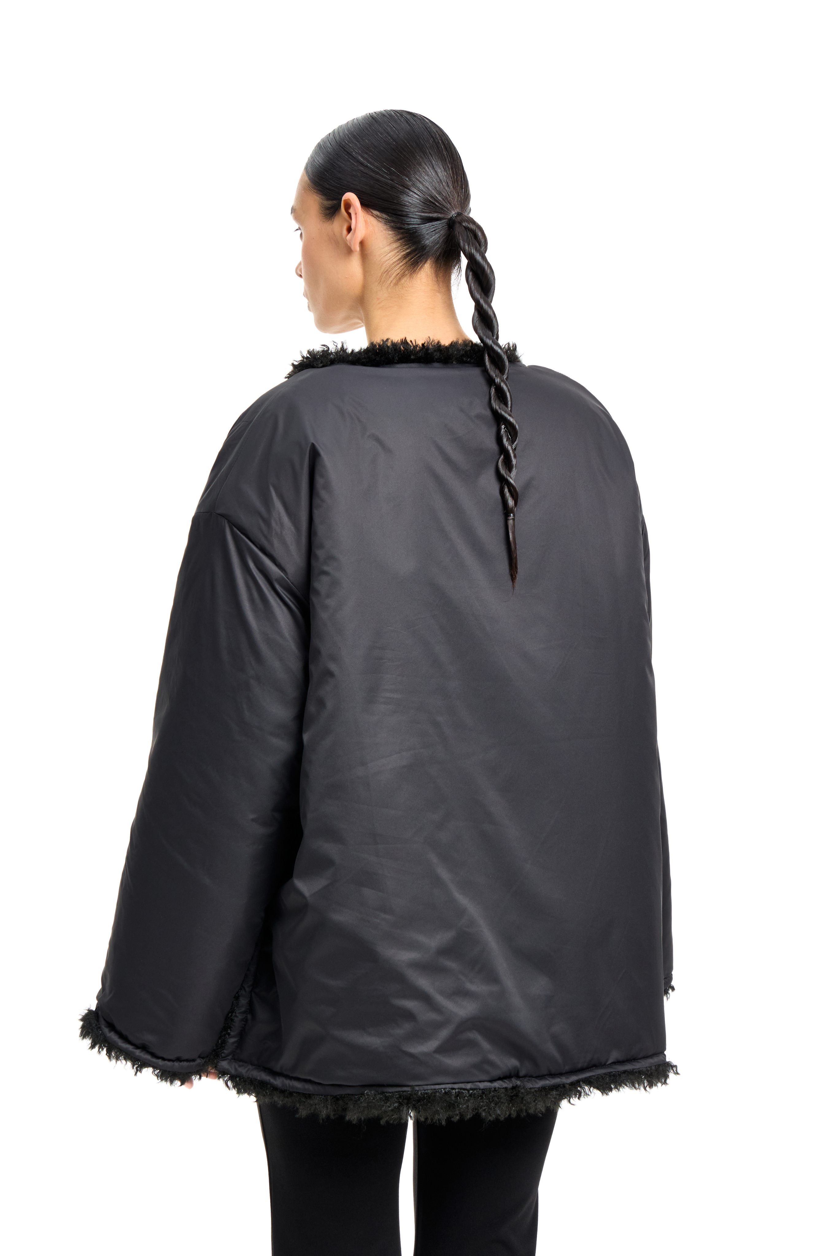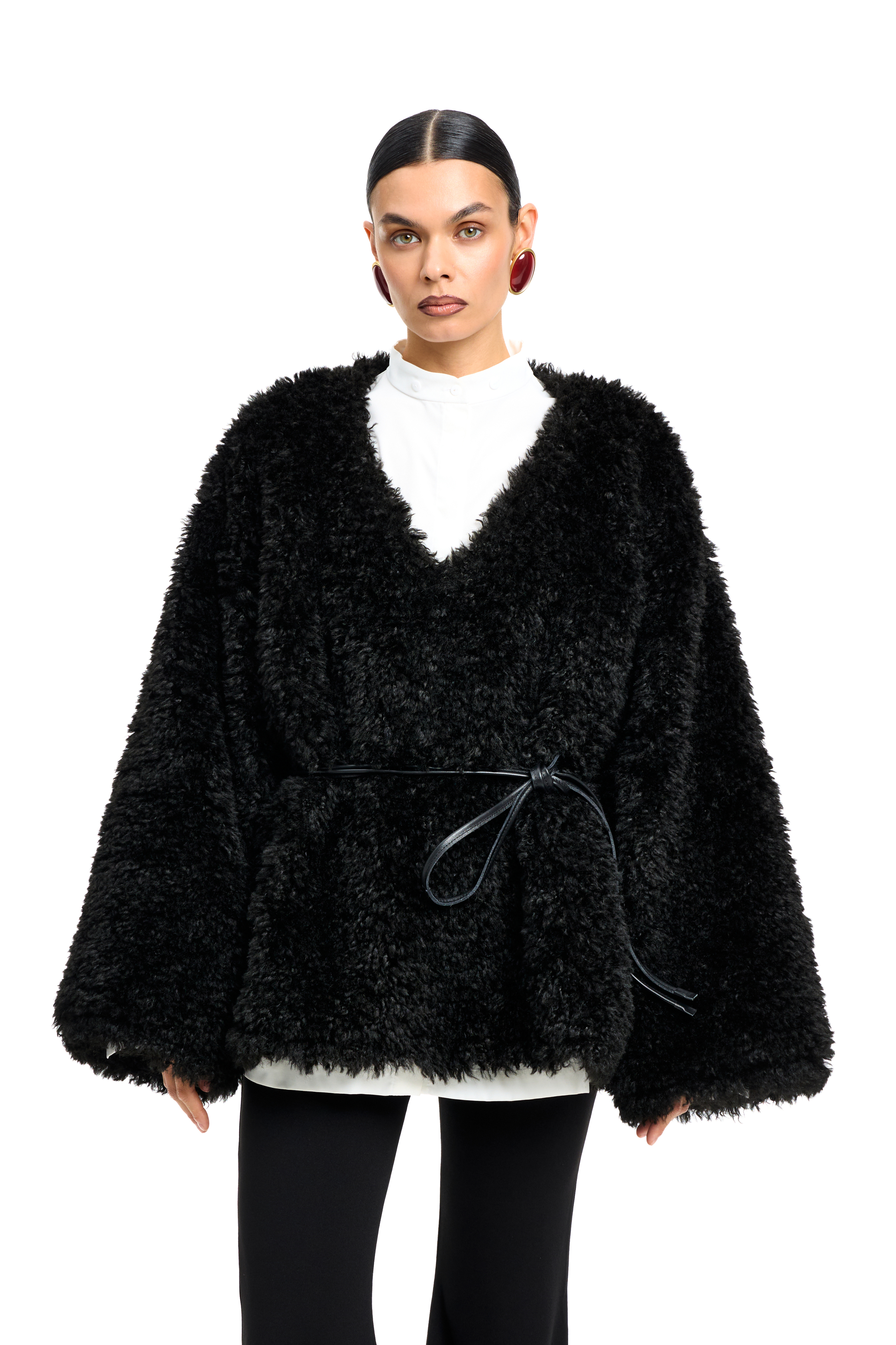 Шуба из качественного и очень приятного экомеха на подкладе с утеплением. Боковые карманы. Застежка на крючки. В комплекте ворот-муфта