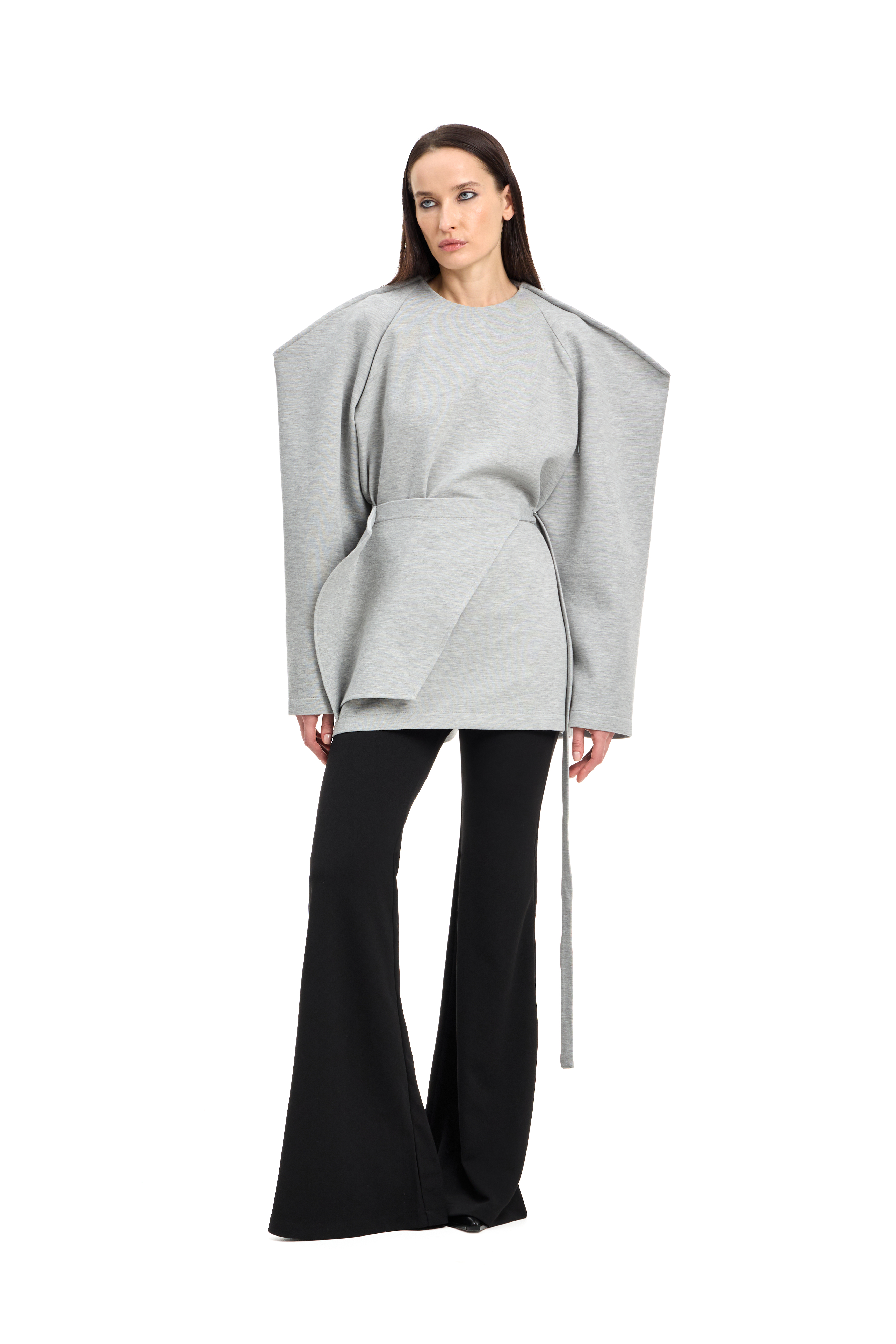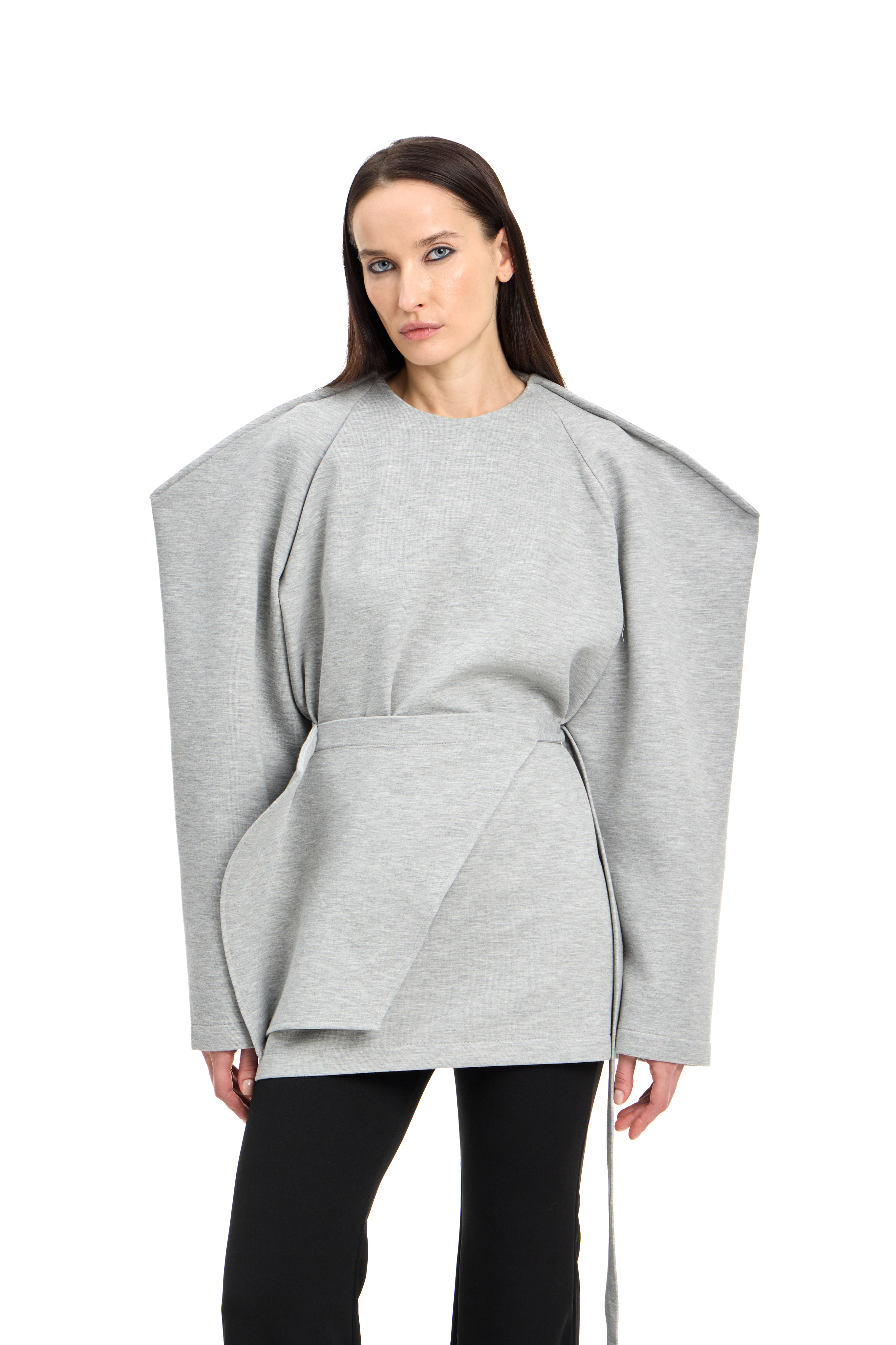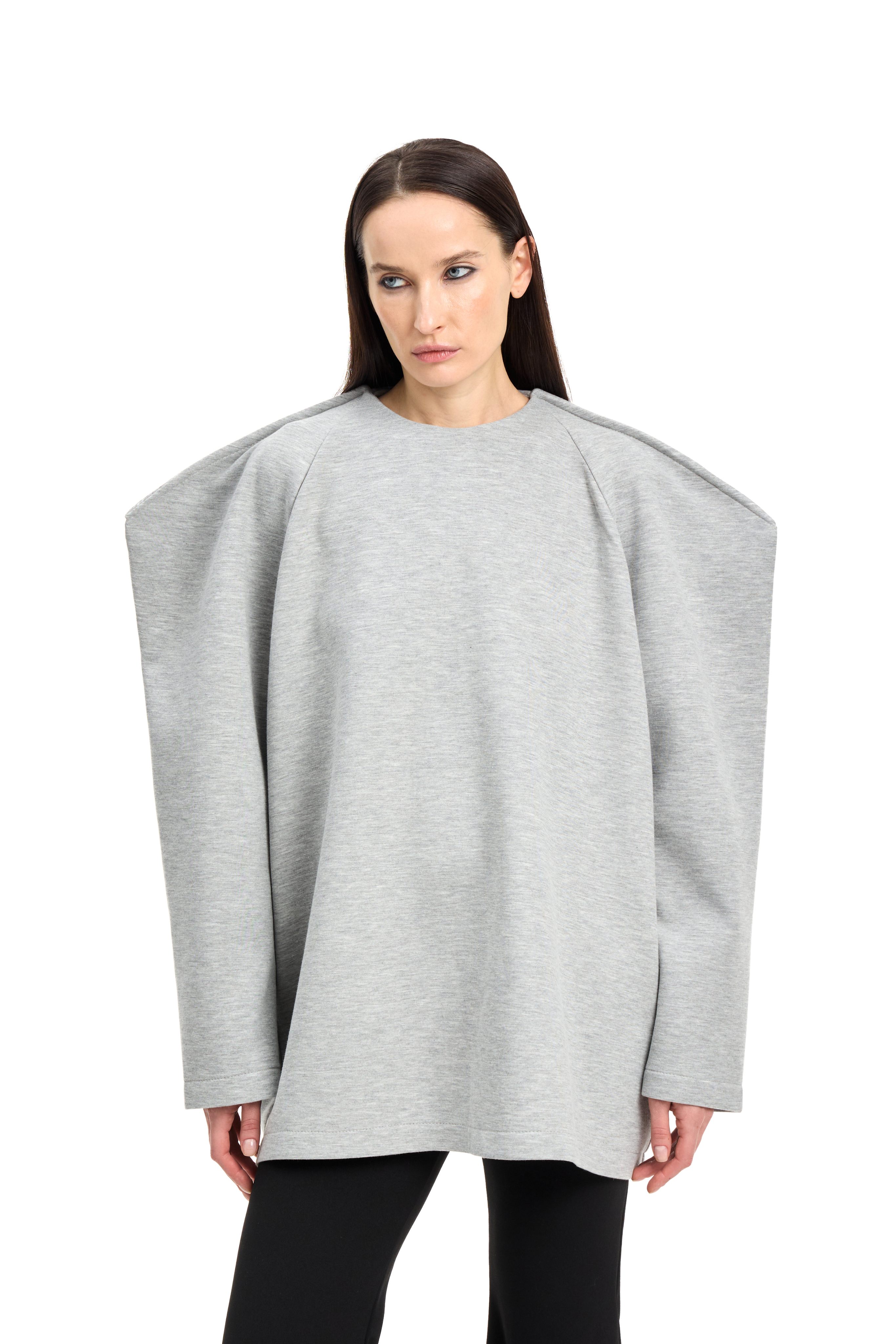 Свитшот с акцентными плечами и баской для создания многогранных образов
