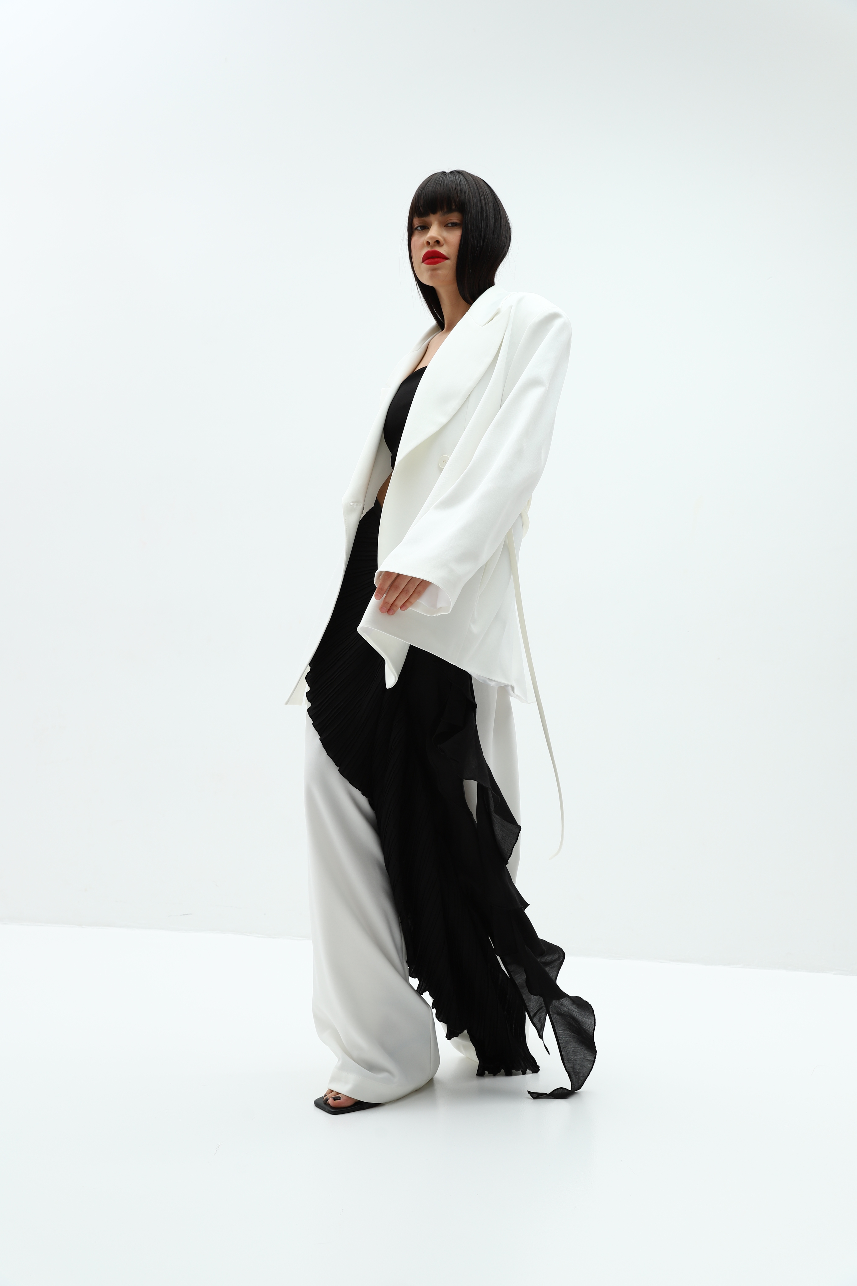 Жакет с разрезами и акцентом в виде имитации корсета. Объем регулируется с помощью шнура на спине.