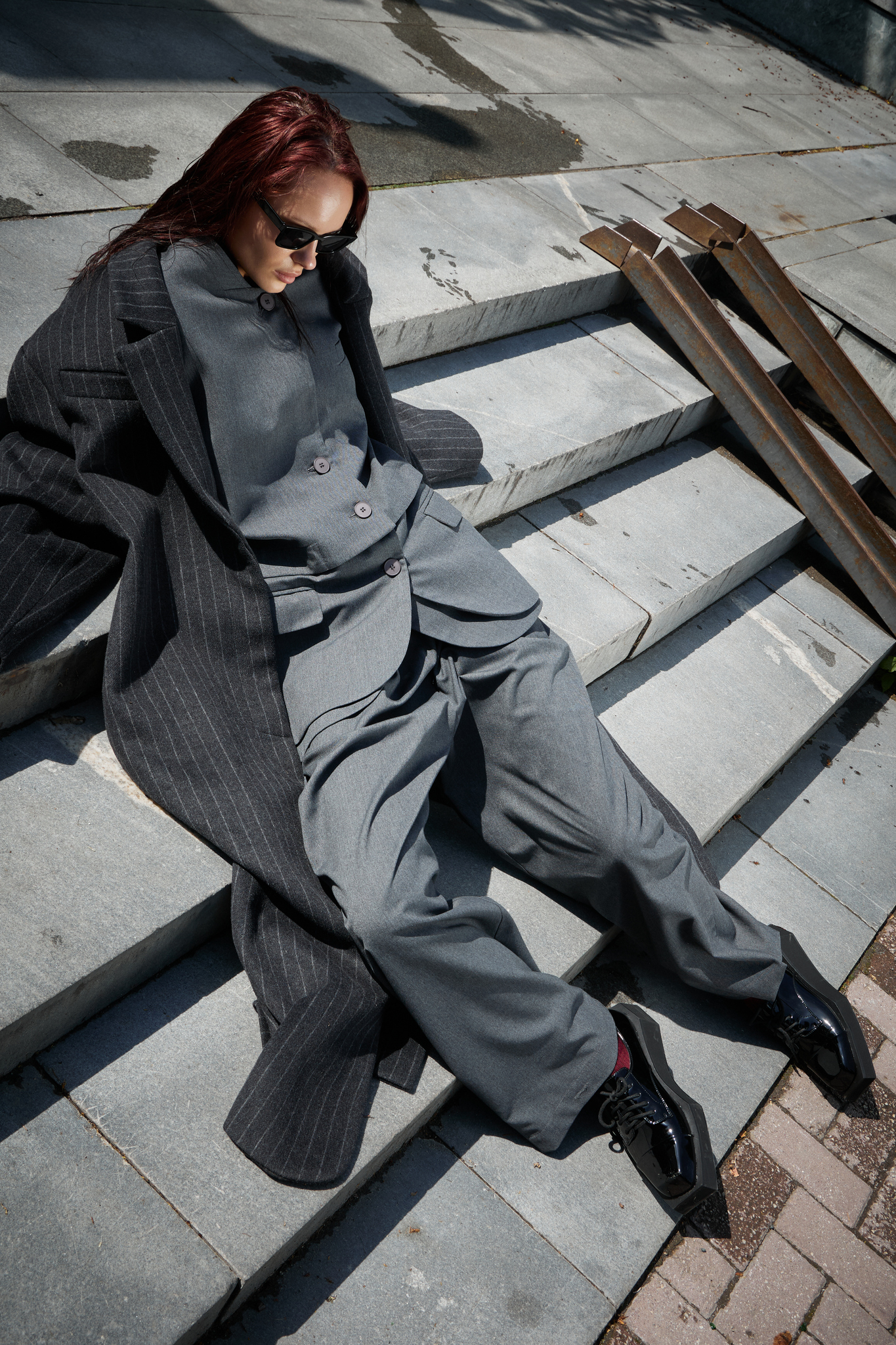 Жакет из костюмной ткани. Трансформируется в 4 варианта. Застежки на пуговицах.